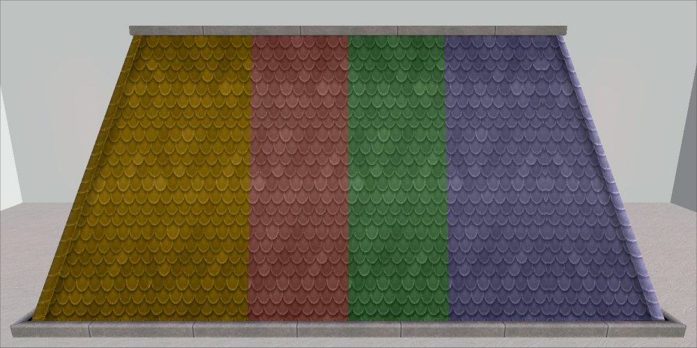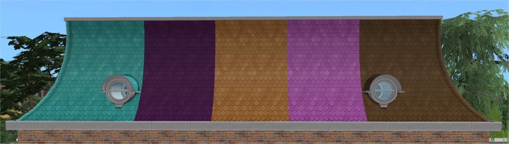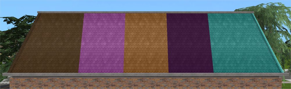 This post and upload was originally released on my tumblr. There are some new recolours for these here So I was trying to help someone over at MTS with something SimPE related and had a look at the Mansard roof pieces called A Bit Steep. I rattled off a few quick recolours because that roof piece, in fact, uses the same textures as the Conexion Bohemia roof pieces which I rescaled (made quarter-sized) and recoloured here and I still had the recolour textures. That was easy and a bit of a cheat really but I thought I’d put them up anyway.