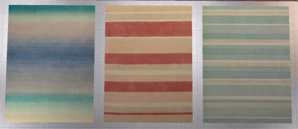 Herewith, three pastel recolours of Nengi65's rug collection because you can never have too many recolours of this mesh and besides, these textures were begging - begging - to be made into three stylish rugs for the game.