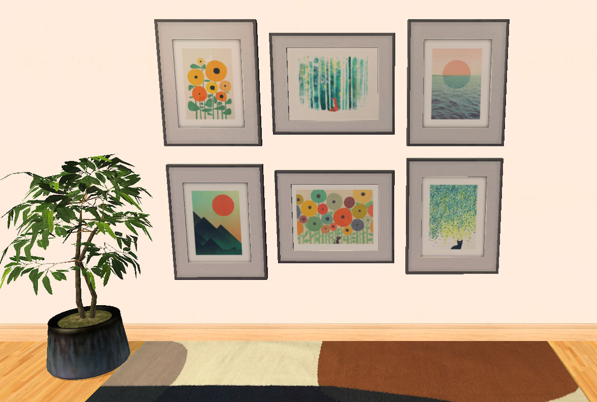 I made this CC for the Christmas in July event 2021 at Garden of Shadows. After I got done with making the present I made for Infinite Iterations as part of the event, I decided to make these pictures as a Stocking Stuffer because I was bashing out lots of textures for recolours anyway and how can one (or six) more pictures files hurt? I'd had the images hanging around for ages and I really like them.