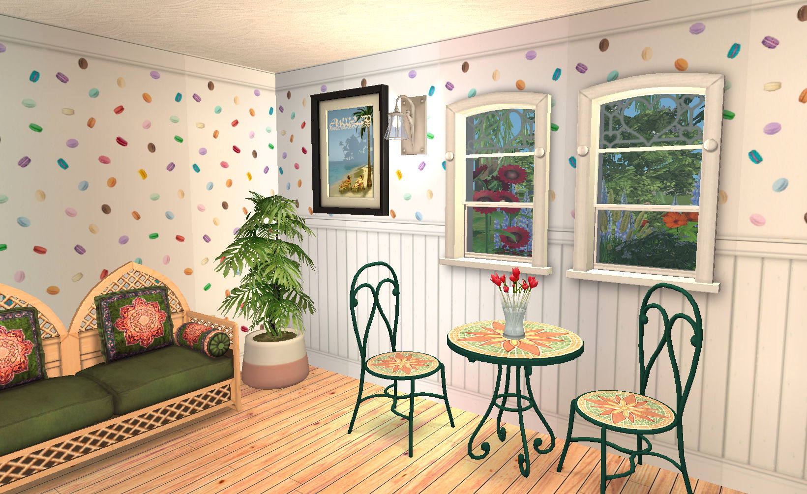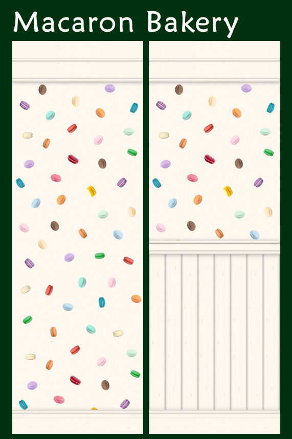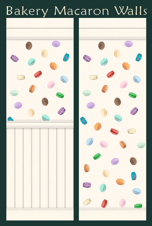 This is my entry for SimPearls Wallpaper Makes the Room January 2022. The prompt was to design two new walls for a bakery called Sweetie Pies. Well, what do you think of when you think of bakeries and sweets - I think of macarons.