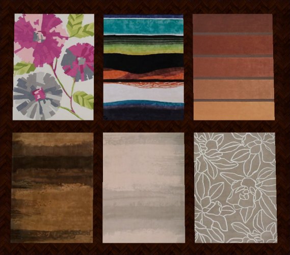 These are six recolours for the 3x4 master rug from Nengi65's Rug Collection (the recolours will show on all other rugs from the collection as they are slaves to the 3x4 master rug).