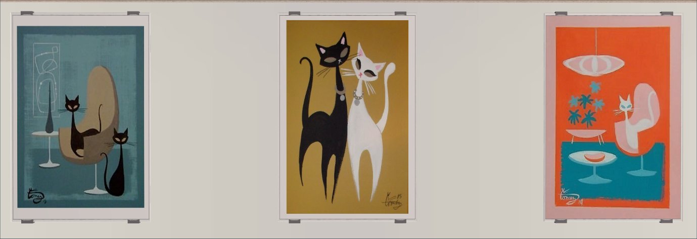 The images are not original vintage cat images but modern interpretations of that style. I have used some advertising images from several artists who produce this type of material (and I think you would agree they are very lovely). The artists are as follows and I have provided links so you can go and have a look at their online pages/sites for yourself: