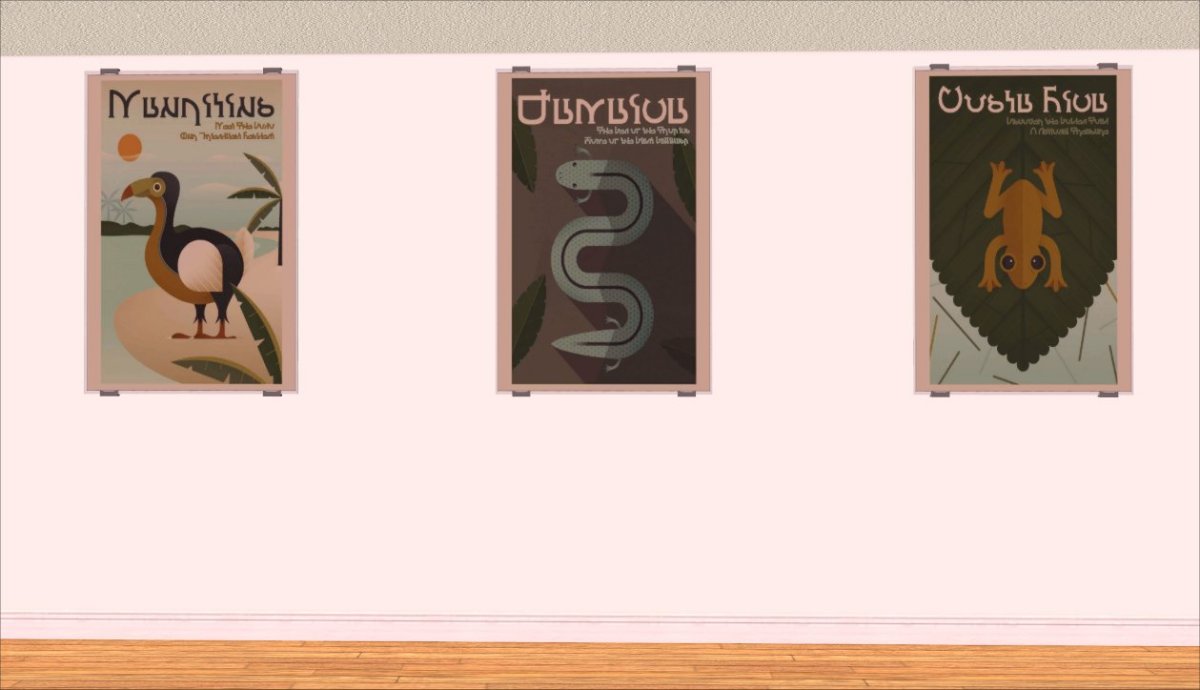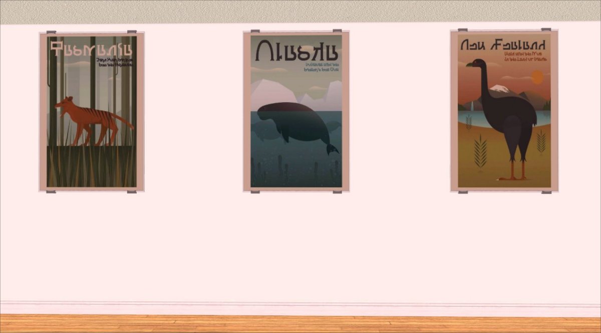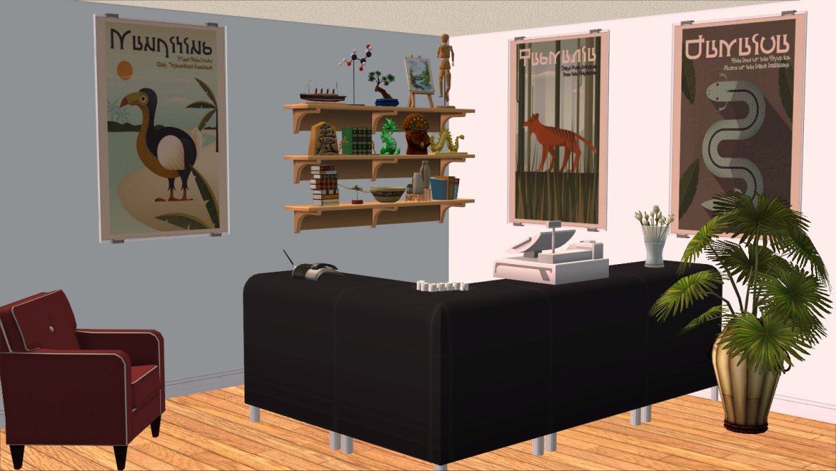 There are six lovely graphics about extinct animals in six countries: Alaska; Jamaica; Mauritius; Costa Rica; New Zealand and Tasmania (well, strictly a mix of countries and states). I set the graphics on the Pineapple poster mesh from Nightlife and Simlished them. So you will need Nightlife and the CEP in order to see them.