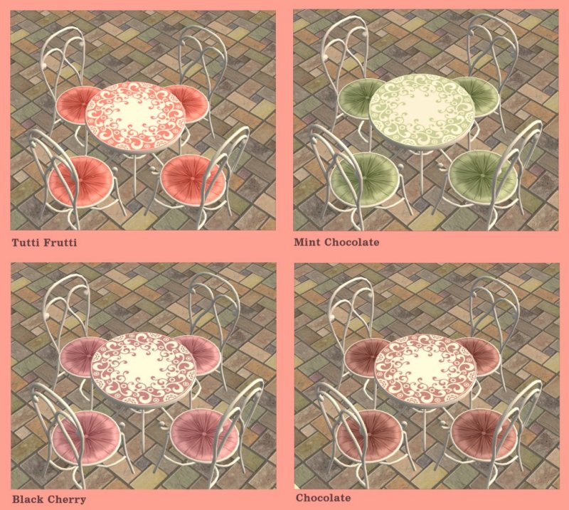So this is part three of a set of things for my Arcady Ice Cream Parlour. I made these so that there are some useful recolours of objects which might fit a shop selling my ice creams. There are four sets of recolours here. Please read down the page for information about required meshes and items included. The other parts of the set can be found here: