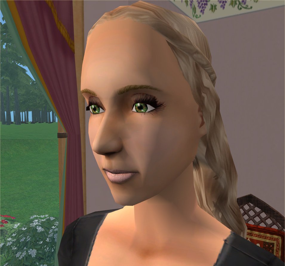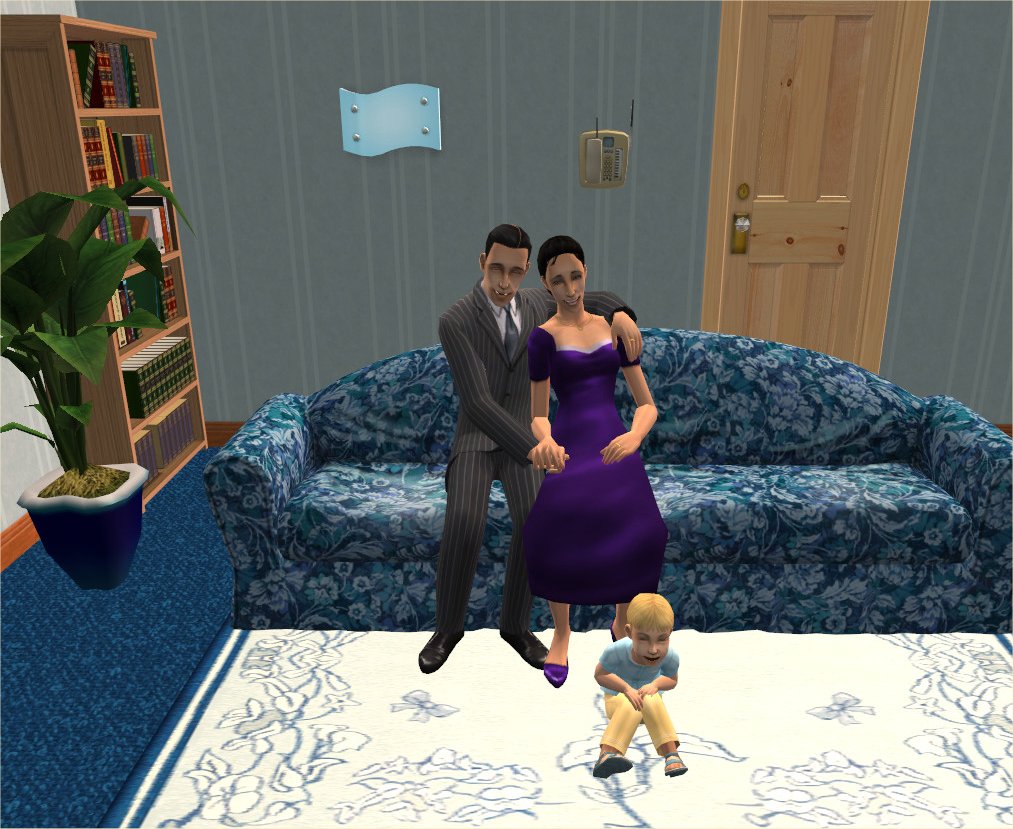 I went through Little Carping’s screenshots folder and realised that when I started in 2004, of course, the quality of snapshots was horrid. So I’ve taken some new pictures – remaking Randolph, Cecilia, Mercer, Amelia and Phoebe from clones of the originals in Little Carping. The pictures show them with my newer defaults (of course) and I tried to get the spirit of their original homes though it’s inevitable I’ve forgotten details or used the wrong stuff. The original lots only used EAxis content of course, it was a while before we got recolours for objects (CC skins were available before the game was released – I even have some still. Well one or two). They all had custom skintones which they’re still wearing and Phoebe has custom eyes.