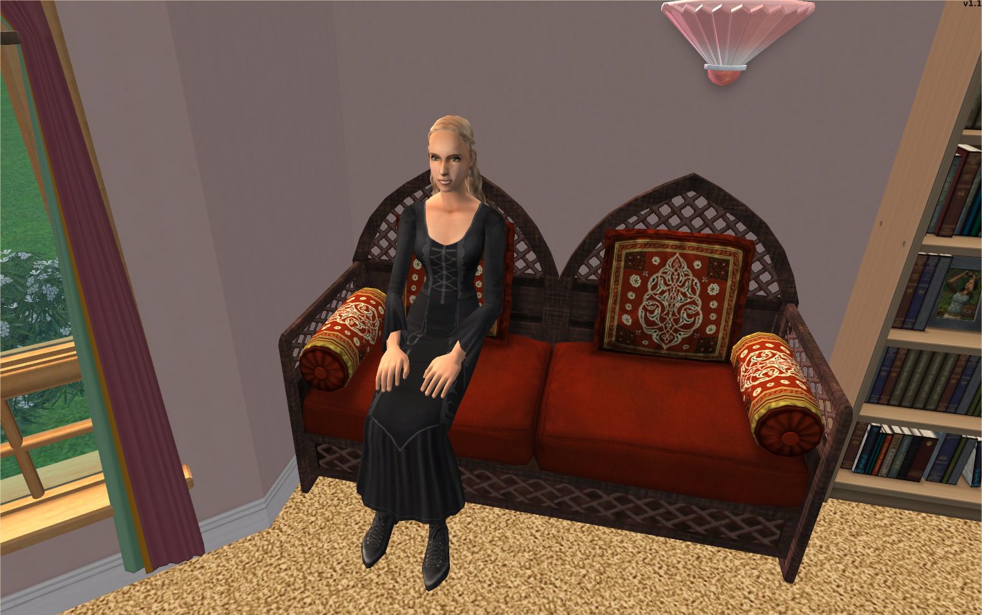 So I thought about it and planned. The oldest residents in TS1 had been the Goths (senior) and a couple of sisters - Sororah - I had created to run a kennels (when Unleashed was released), followed a little later by Ginia Katt and Mama Hick. I'd also created an older couple called Porter who were the janitors/caretakers for a hall of residence I built for some student sims. Remember TS1 didn't having aging so although the Sororah sisters were later additions to the neighbourhood (coming in with Unleashed) as they were created as elders, they - well - stayed that way and were some of the oldest residents of the neighbourhood. I developed a schedule to introduce them to Little Carping. It helped that the senior Goths were my favourite characters from TS1. A bit unusual, I think, but then I just loved subverting their respectability. The other thing to say is about where I use EAxis sims. It should be remembered that this is my version of those sims - not the canon version. I don't follow the EAxis stories and there's significant deviation later on. Though some things are the same - Mortimer does marry Bella (eventually). Cornelia doesn't really like her though. But that's getting ahead ...