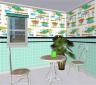As with the tiles, the selection is (loosely) based around a colour set based on classic 50s design: pink, turquoise, lemon, chartreuse and candy apple red. There are 4 pink walls, 5 turquoise walls, 3 lemon (yellow) walls, 5 chartreuse walls and 2 candy apple red wallpapers plus a cream wallpaper which I just liked and thought had a retro vibe. A set of 20 wallpapers in all then – all have the same kickboard and crown.