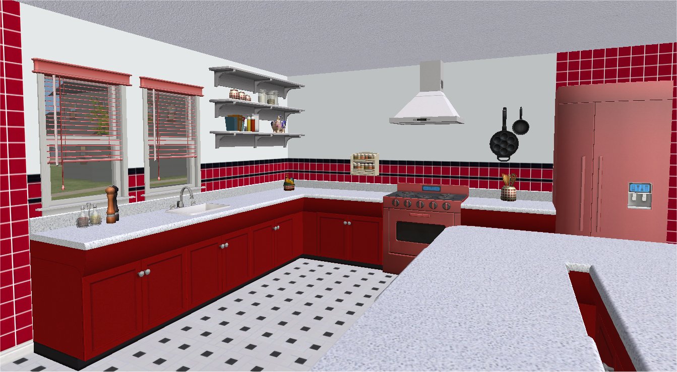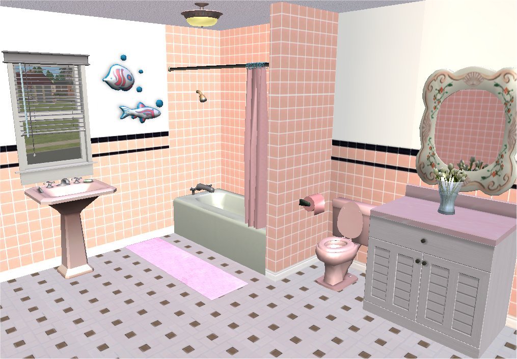 Grammapat over at MTS did a WCIF a while back asking about CC to make a pink bathroom, 1950s style. Fantastic idea. I was not much help but something about the websites she linked to got to me and I went mad and made some walls and floors suitable for bathrooms and kitchens Retro 50s style!